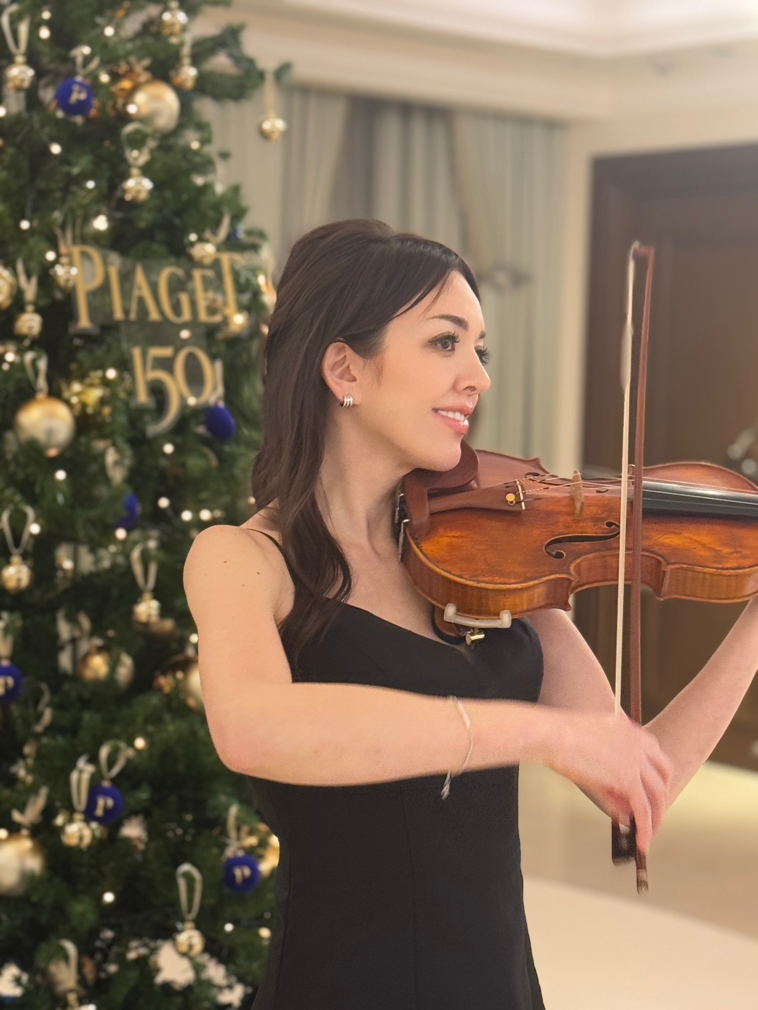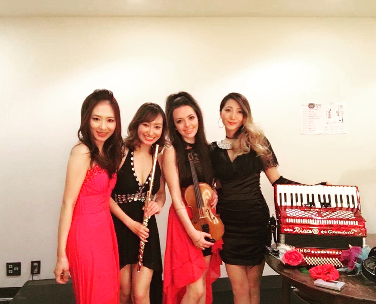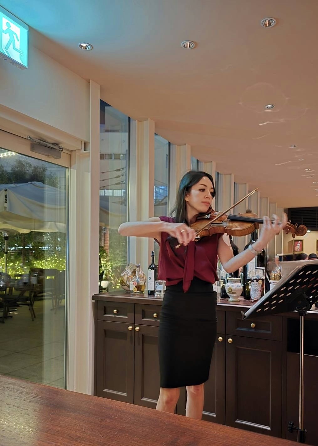 Besides performing, she is also a model, modelling for weddings and doing promotional videos for products and company HP’s and enjoys teaching the violin in Tokyo.