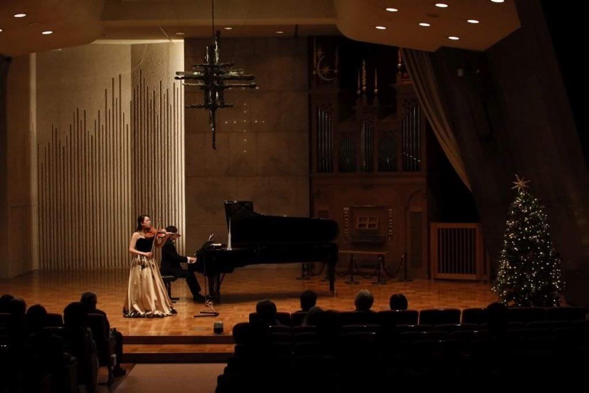 She later entered the Toho School of Music High School and College to study under Professor Isako Shinozaki. She also studied with Kurt Sussmannshaus, Professor at the University of Cincinnati – College-Conservatory of Music and Great Wall International Music Academy, Hyo Kang, Professor at the Julliard School of Music, KyokoTakezawa, professional violinist, and Viktor Pikaisen, at the Nagano Aspen Music Festival in Japan.